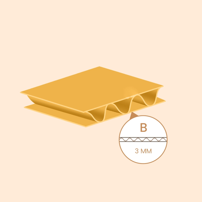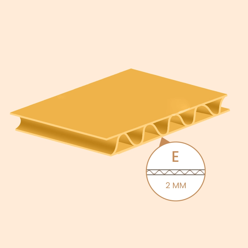 E flute offers strong box compression strength, making it efficient for packaging. Its flat surface ensures smooth printing, while its thin, lightweight design saves space. Thus, this type works well for high-quality printing and serves as a great alternative to traditional paperboards. In particular, it is ideal for corrugated box packaging of ceramics, cosmetics, and fragile items like glassware, with a thickness exceeding 1/16” and 90 linears per foot.